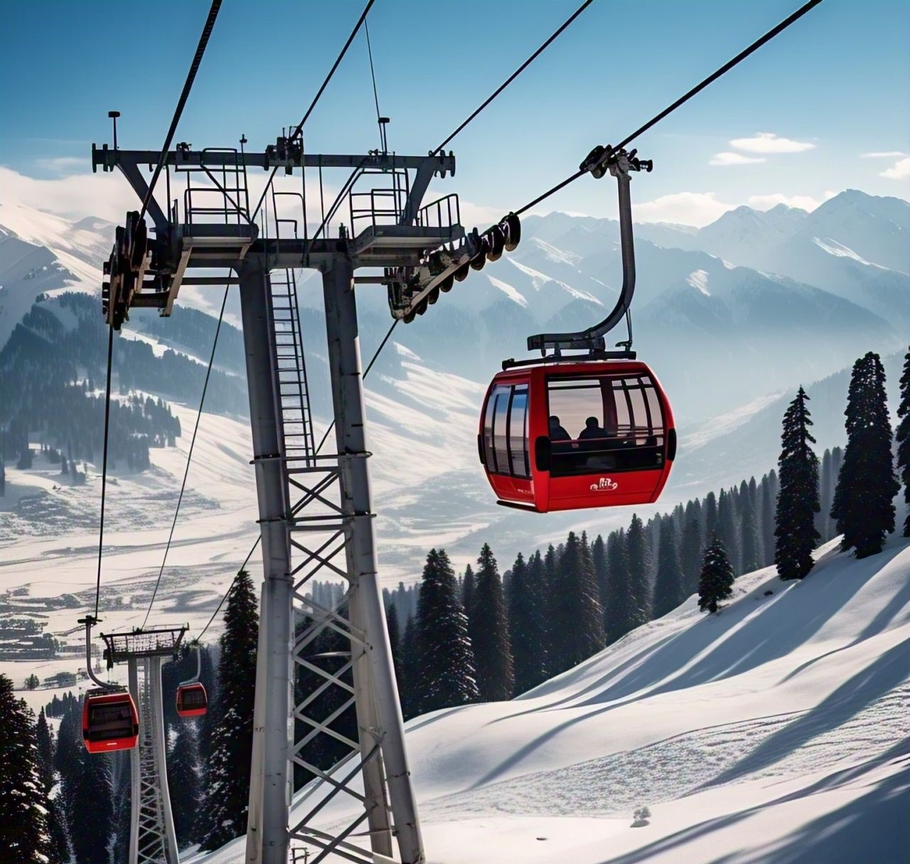 The Gulmarg Gondola is one of the main attractions in the stunning region of Gulmarg, Jammu and Kashmir, offering visitors breathtaking views of the snow-capped Himalayas. It is one of the highest operating cable cars in the world, consisting of two stages: the first leading from Gulmarg to Kongdoori Station in the bowl-shaped Kongdori valley, and the second ascending to a height at Apharwat Peak.